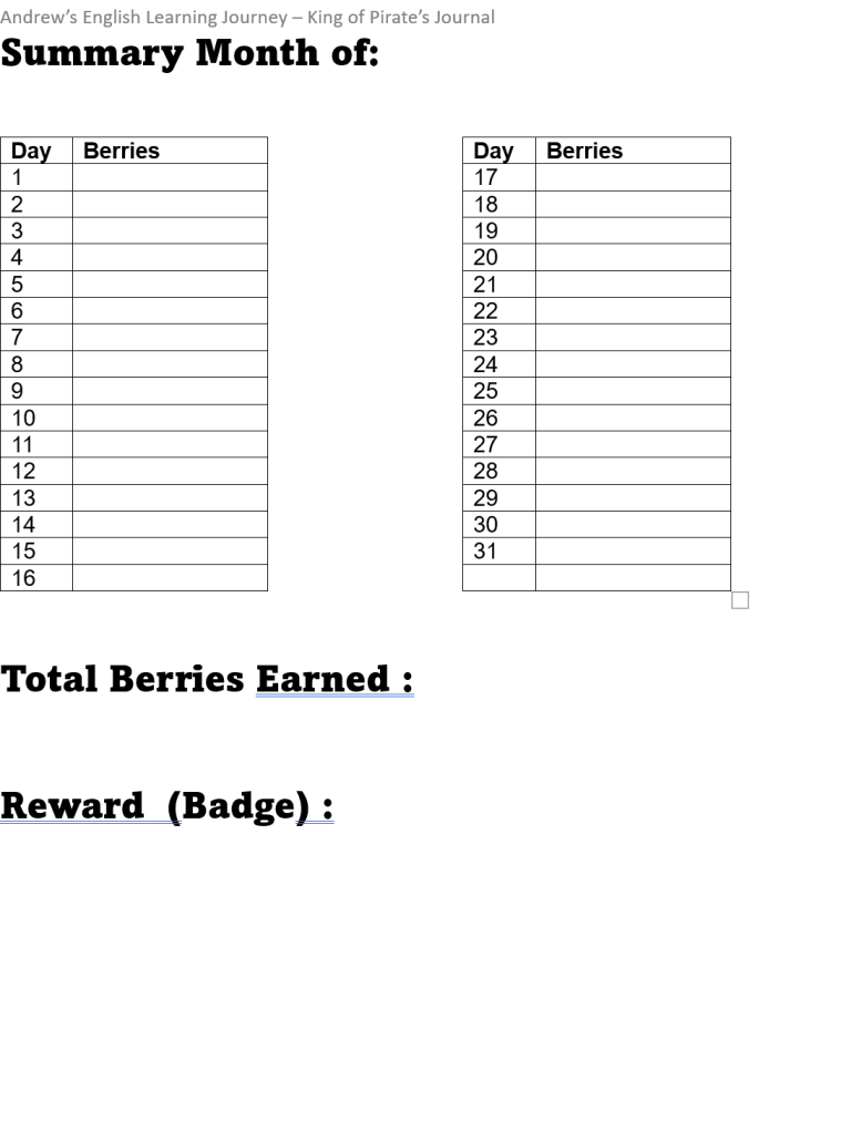 Monthly Review : This is a performance review. The conversation can be, “oh, this month all home works got you 10 points. You did well.” Alternatively, you might say, “you didn’t do much study at home. See, no points in these few days.” (referring to daily report on summary page). You can do better next month! Focus on positive conversation.